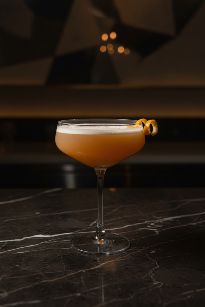 Charred apple forms the foundation of this bright, refreshing flute cocktail, softened with rosemary honey water and a touch of lemon. Finished with club soda and garnished with an apple fan, Gold Hour is crisp, aromatic, and quietly celebratory.